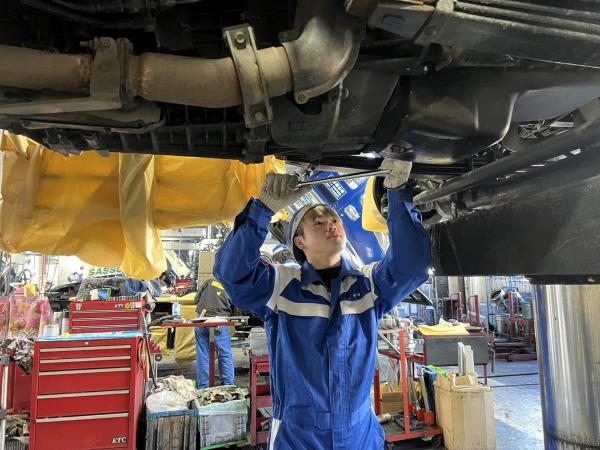 入社の理由は、職場体験をした際に、アットホームな雰囲気と整備士の方々の丁寧な指導に、惹かれたからです。